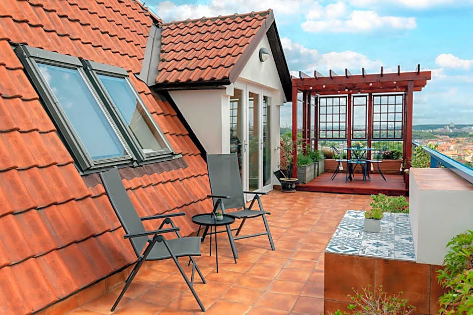 This apartment features a 45 m2 large terrace with views of the Prague Castle.